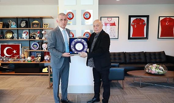 İstanbulspor A.Ş. Kulübü ve 1. Lig Kulüpler Birliği Başkanı Ecmel Faik Sarıalioğlu, Türkiye Futbol Federasyonu Başkanı İbrahim Ethem Hacıosmanoğlu'nu makamında ziyaret etti.
