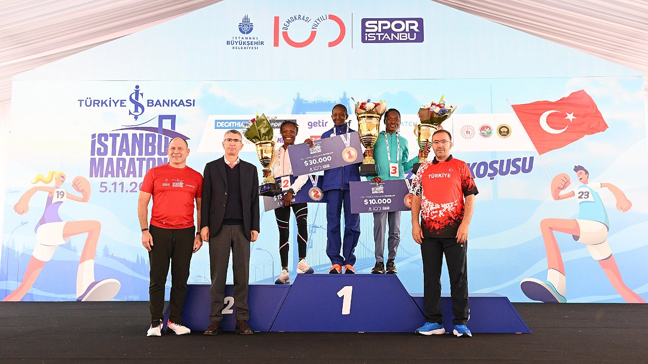 İstanbul Büyükşehir Belediyesi (İBB) iştiraki Spor İstanbul tarafından düzenlenen Türkiye İş Bankası 45. İstanbul Maratonu “Yüzyılın Koşusu” sloganı ile start aldı. Yarışın startını İstanbul Büyükşehir Belediye Başkanı Ekrem İmamoğlu verdi. World Athletics (Dünya Atletizm Birliği) Gold Label Kategorisi’nde dünyanın en iyi 28, Avrupa’nın ise en iyi 5 maratonundan biri olan Türkiye İş Bankası İstanbul Maratonu, eşsiz güzellikteki İstanbul manzarası eşliğinde on binleri ağırladı. 42K, 15K, 8K Kurumsal Koşu ve 8K Halk Koşusu kategorilerinin yer aldığı etkinlikte toplam 45.000 kişi iki kıtayı adımlarıyla birleştirdi. 24 erkek, 10 kadın toplam 34 elit atletin mücadele ettiği yarış, dereceye giren sporcular için yapılan ödül töreninin ardından sona erdi.Türkiye İş Bankası 45. İstanbul Maratonu Erkekler genel klasmanda Kenyalı atlet Panuel Mkungo 2:10:35’lik derecesiyle birincilik ipini göğüsledi. Yine Kenya asıllı sporcu Benard Cheruiyot Sang 2:12:41’lik derecesiyle maratonu ikinci sırada tamamladı. Sang’ı 2:12:44 derecesiyle takip eden Kenyalı James Kiplagat ise üçüncülük kürsüsüne çıktı.Türkiye İş Bankası 45. İstanbul Maratonu Kadınlar Genel Klasman’da Kenyalı atlet Beatrice Chepto 02:27:09 süresiyle birinciliği elde etti. İkinci sırada 02:27:24’lük derecesiyle Kenyalı atlet Veronicah Nejeri Maina yer aldı. 2:32:15 ile parkuru tamamlayan bir diğer Kenyalı atlet Valentina Mateiko üçüncü olduTürkiye İş Bankası 45. İstanbul Maratonu’nda 15K ve 42K kategorilerine toplam 15.000 sporcu, Kurumsal Koşu ve Halk Koşusu’na ise toplamda 30.000 İstanbullu katıldı. Tekerlekli sandalyeli ve patenli sporcuların da yer aldığı organizasyonda İstanbullular, Cumhuriyet’in 100. yılını koşarak kutlarken boğazın, köprünün ve şehrin tadını da çıkardı. 42K’lık parkurda farklı noktada bulunan eğlenceli etkinlik alanları ve yarışın ardından Yenikapı’da gerçekleştirilen Metro FM DJ’i Uğur Şener ile müzik şöleni, Sattas konseri ve Nihat Sırdar ile 90’lar partisi ve daha birçok etkinlikle İstanbul’da cumhuriyet coşkusu doyasıya yaşandı.