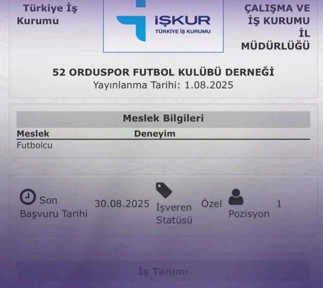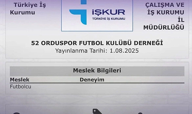 - Profesyonel futbolcu transferi için İŞKUR gibi bir kamu kurumunun tercih edilmesi, hem şaşkınlık hem de merak uyandırdı.