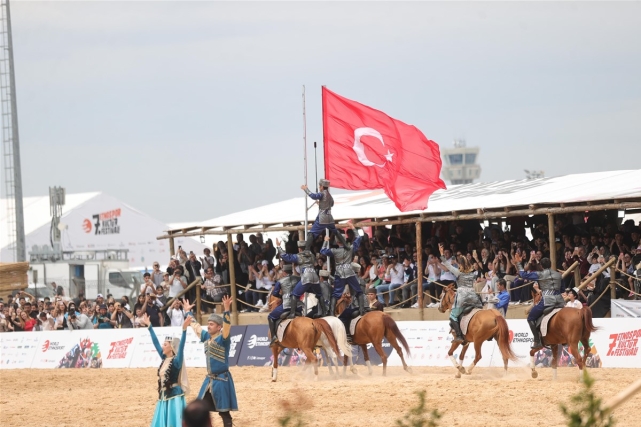 Bilal Erdoğan: “Bu festival, insanlığın ortak mesajı ve yeniden hatırlayışın güçlü bir çağrısı olmuştur”Dünya Etnospor Birliği Başkanı Bilal Erdoğan, yaptığı açıklamada, 7. Etnospor Kültür Festivali'nin hayırlı ve uğurlu olmasını dileyerek, şu ifadeleri kullandı:“Dört gün boyunca 2025'in Aile Yılı olması dolayısıyla buraya bütün halkımızı beklediğimizi söylemiştik. İlk günün erken saatlerinde böylesine yüksek bir teveccühü gördüğümüz için çok mutluyuz. Bu gösteriyor ki genç nesillerimizin kendi kültürüne ve mirasına özlemi var. Mirasımızı, kültürümüzü ve kimliğimizi yeni nesillere aktarmak için çok güçlü bir fırsatımız var. Gençler, istiyoruz ki bu toprakları bize vatan yapan değerli büyüklerimizden küçüklerimize aktarabilelim. Aktarabilelim ki biz olalım. Bu toprakları bize vatan yapan değerleri kaybetmeyelim ki bu topraklar bin yıl bize vatan olduğu gibi bin yıl daha bizlere vatan olsun. Festivalin gerçekleşmesinde emeği geçen ve 4 gün boyunca ter dökecek herkesi tebrik ediyorum.”“Kültürel izleri yeniden canlandırıyoruz”Etnospor Kültür Festivali'nin tüm dünyanın ortak kültürü ile mirasını yaşatan, büyüten ve yaygınlaştıran bir buluşmaya dönüştüğünü vurgulayan Erdoğan, şu görüşleri paylaştı:“Köklerimizden gelen kadim değerleri, ortak hafızamızı ve gelecek nesillere bırakacağımız kültürel izleri yeniden canlandırıyoruz. Festivalimiz, kültür ve spor alanında dünyanın en büyük organizasyonlarından biri olma iddiasını sürdürmektedir. Her yönüyle gelişen ve büyüyen bu festival, insanlığın ortak mesajı ve yeniden hatırlayışın güçlü bir çağrısı olmuştur. Bu yıl kültür festivalimizi 'Gelenek ailede başlar' mesajıyla çok özel tema eşliğinde gerçekleştiriyoruz. 2025'in Aile Yılı olarak ilan edilmesiyle geleneksel sporlarımızı ve oyunlarımızı aile bağlarını güçlendiren kültürel miras olarak öne çıkarıyor ve toplumumuzun ortak değerlerini yaşatmayı hedefliyoruz.”Gazze başta olmak üzere dünyanın birçok yerinde çocukların en temel hakları oyun oynamaktan mahrum bırakıldığının altını çizen Bilal Erdoğan, "Geçtiğimiz yıl bir hakikatin altını çizerek, 'Oynamak her çocuğun hakkıdır' demiştik. Oynaması gereken yaşta savaşların ortasında kalan, soykırıma maruz bırakılan ve sevinmesi gereken çağda acıların içinde büyüyen çocuklara tanığız. Çocukların bombalar altında ezildiği değil neşeyle oyunlar oynadığı bir dünya istiyoruz. Bu festival, aynı zamanda bir duruşun ve çağrının ifadesidir. İnsanlık vicdanını bu alanda bir araya getiriyoruz. Ortak değerleri burada yeniden inşa ediyoruz. Emek veren herkese şükranlarımı sunuyorum." şeklinde görüş belirtti.