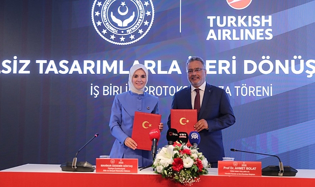 Aile ve Sosyal Hizmetler Bakanlığı ile Türk Hava Yolları (THY) arasında, kullanım ömrünü tamamlamış uçak içi ürünlerin, Bakanlığa bağlı yaşam merkezlerinden hizmet alan bireyler tarafından yeniden üretim süreçlerine kazandırılması amacıyla "Engelsiz Tasarımlarla İleri Dönüşüm Projesi" protokolü imzalandı