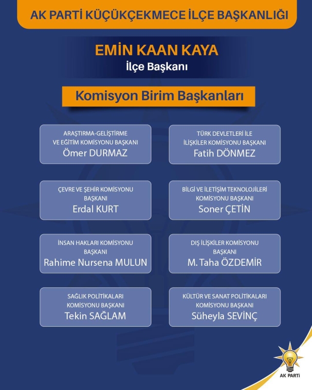İlçe teşkilatı tarafından yapılan açıklamada, yeni dönemin Küçükçekmece’ye, teşkilata ve davaya hayırlı olması temennisinde bulunulurken, görev alan tüm komisyon birim başkanlarına da başarı dilekleri iletildi.