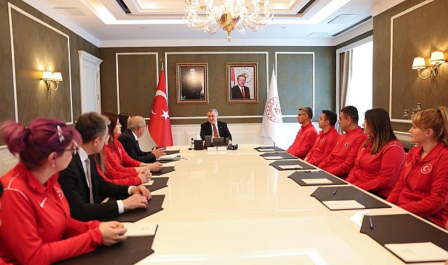 Ankara’da Bakan Dr. Osman Aşkın Bak’ın makamında gerçekleşen kabulde, sporcular Şevval İlayda Tarhan, Yusuf Dikeç, Şimal Yılmaz, Esra Bozabalı, İsmail Keleş, İlayda Nur Çürük, Elif Berfin Altun ve Tunahan Tatoğlu’nun yanı sıra Türkiye Atıcılık Federasyonu Başkanı Murat Kocakaya ile antrenörler de yer aldı.Bakan Bak, milli sporcuları tebrik ederek, “Elde ettiğiniz madalyalarla bizleri gururlandırdınız. Aynı zamanda Olimpiyat Oyunları'ndaki başarının tesadüf olmadığını da göstermiş oldunuz. Tarihte ilk kez Atıcılık Milli Takımımız Avrupa şampiyonu oldu. Mutluluk verici bir başarı. Genç sporcularımız bizlere gelecek adına umut verdi. Kazanılan madalyalarda emeği bulunan kulüplerimizi, antrenörlerimizi, sporcularımızı, Atıcılık Federasyonu Başkanı Murat Kocakaya’yı tebrik ediyorum. Organizasyonda 3 altın ve 2 bronz madalya kazanan Şevval İlayda Tarhan’ı ayrıca kutluyorum. İlk defa bir kadın sporcu Avrupa şampiyonasında 5 madalya birden kazandı. Tarihi bir başarı. Atıcılık sporuna olan ilgi artıyor. Örnek alınan atıcılık sporcuları var. Tüm sporcularımıza teşekkür ediyor, başarılarınızın devamını diliyorum.” dedi.Türkiye Milli Atıcılık Takımı sporcuları da Bakan Dr. Osman Aşkın Bak’a sunduğu destekten dolayı teşekkür ederek, daha büyük başarılar kazanmak için çalışacakları sözünü verdi.Ziyaretin ardından milli sporcular, Bakan Bak’a üzerinde imzalarının bulunduğu milli takım forması hediye etti.