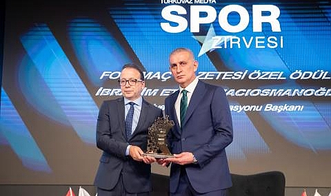 Konuşmasının ardından TFF Başkanı Hacıosmanoğlu'na Fotomaç Gazetesi Özel Ödülü takdim edildi.