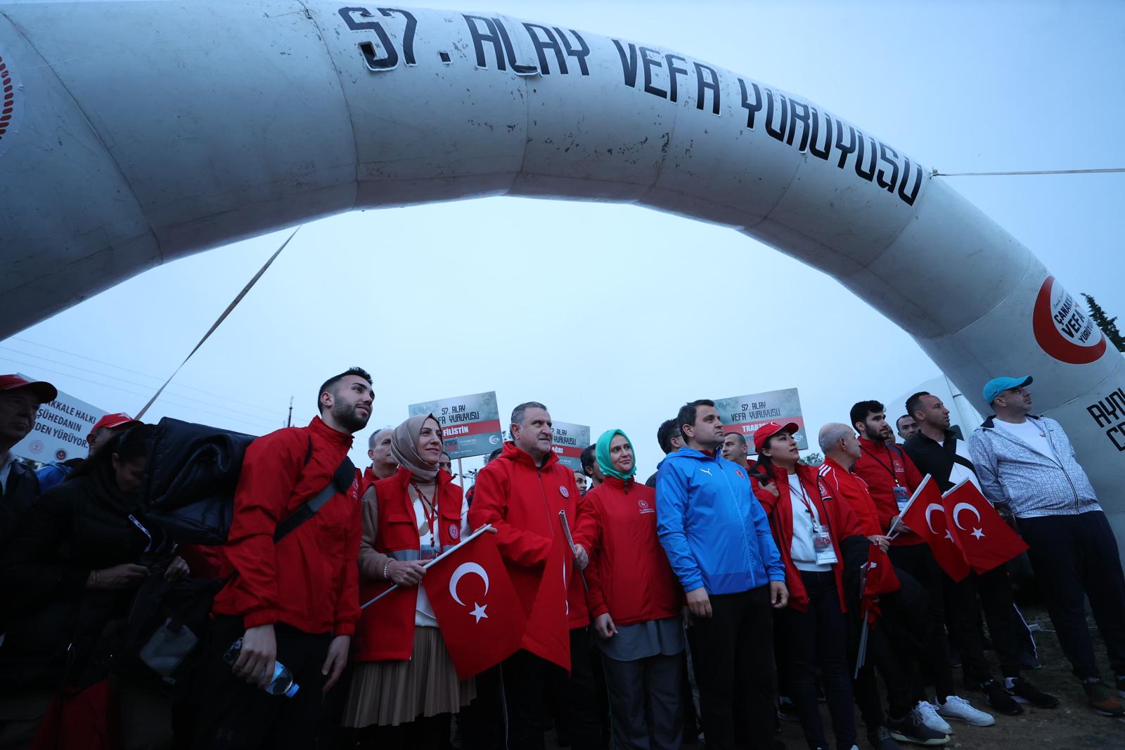 Gençlik ve Spor Bakanlığınca düzenlenen "57. Alay Vefa Yürüyüşü" düzenlendi. Binlerce genç ile beraber yürüyen Gençlik ve Spor Bakanı Dr. Osman Aşkın Bak "Gençlerimiz o atmosferi görüyor, o zamanki o mücadelenin zorluklarını yaşananları hissediyor. Amaç bu toprakların gücünü, nasıl bir mücadele verildiğini anlatmak." dedi.