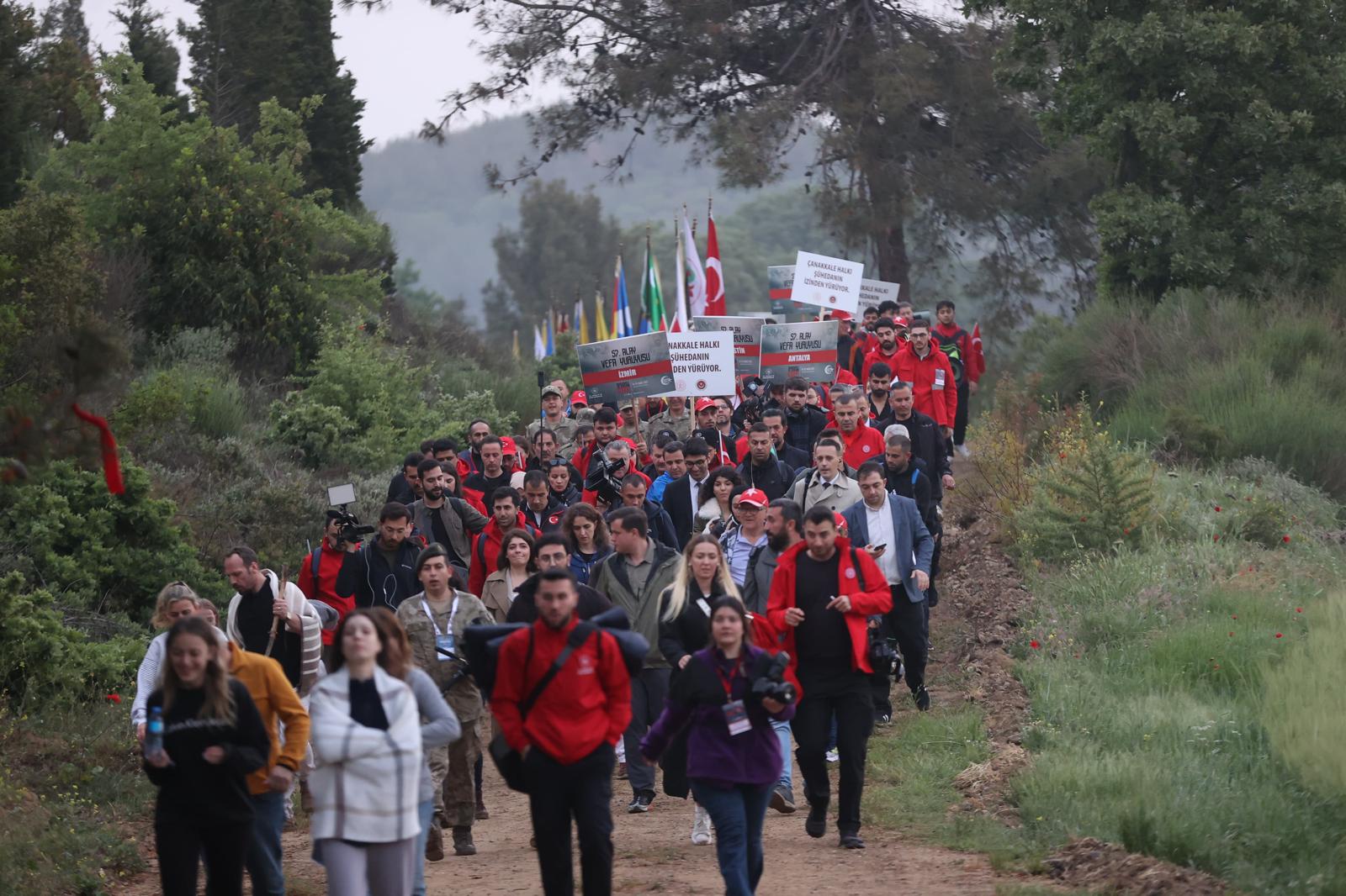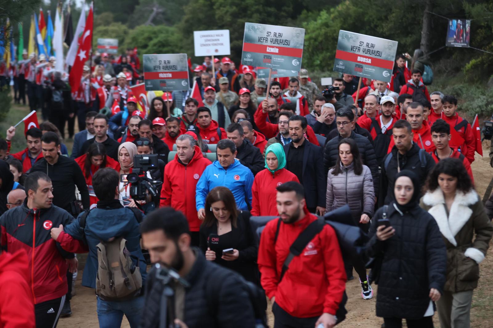 Gençlik ve spor Bakanlığı tarafından '57'nci Alay Vefa Yürüyüşü'ne katılan gençler, Eceabat ilçesine bağlı Kocadere köyünde geceden kamp kurdu. Gençlik ve Spor Bakanı Dr. Osman Aşkın Bak, yürüyüş öncesinde katılımcılara, tümü şehit düşen 57'nci Alay askerlerinin son yemeği olan kırık buğday çorbası dağıttı. 109 yıl önce şehit düşen askerler gibi sabah namazı kılınmasının ardından yürüyüş başladı.Gençlik ve Spor Bakanı Dr. Osman Aşkın Bak, yürüyüş başlangıcında yaptığı açıklamada, ülkenin dört bir tarafından programa katılım olduğunu söyledi.Geceden alana geldiklerini anlatan Bakan Bak, "Amacımız bu ülke gençlerine Çanakkale destanını, Malazgirt zaferini, Dumlupınar, 30 Ağustos'taki, Sakarya'daki, 15 Temmuz'daki destanları unutturmamak, hatırlatmak. Bu toprakların ne kadar kıymetli olduğunu, bu vatan için binlerce şehidin verildiğini anlatmak ve bunları yaşamalarını sağlamak." dedi.Gençlerin burada şartları gördüğünü çadırlarda konakladığını aktaran Bakan Bak, konuşmasını şöyle sürdürdü: "Gençlerimiz o atmosferi görüyor, o zamanki o mücadelenin zorluklarını yaşananları hissediyor. Amaç bu toprakların gücünü, nasıl bir mücadele verildiğini anlatmak. Bakanlık olarak bunu sürekli gerçekleştiriyoruz. Aynı zamanda ülkenin dört bir yanından gençlerimizi Çanakkale gezileriyle buraya taşıyoruz. Rehberler, tarihçiler buradaki destansı mücadeleyi anlatıyorlar. Bu topraklar kanla yoğrulmuş, destansı mücadele var, Gazi Mustafa Kemal Paşa ve silah arkadaşları o zaman mücadelede yer aldılar. Tüm dünya ve Batı medeniyetine, emperyalizme karşı büyük mücadele ortaya kondu, dünyanın en güçlü donanmaları, ordularını burada yendiler. Herkese, tüm dünyaya 'Çanakkale geçilmez' efsanesini anlattılar, gösterdiler. Geçmişimizle tarihimizle gurur duyuyoruz."“Vatan kanla yoğrulmuştur gerçekliğini burada gençlerimize yaşatıyoruz”Türkiye'nin bu coğrafyada güçlü olması için gençlerin vatan bilincini, ülkenin, toprağın kıymetini, bu topraklar için neler feda edildiğini, binlerce şehit verildiğini bilinmesi gerektiğini ifade eden Bakan Bak, "Filistin, Suriye, Irak, Azerbaycan'dan da askerler geldi burada şehit oldu. Bu coğrafyada güçlü kalabilmek için, güçlü bir orduya, savunma sanayisine güçlü bir yapıya sahip olunması gerektiğini biliyoruz." diye konuştu.Cumhurbaşkanı Recep Tayyip Erdoğan'ın da gençlerin Çanakkale'ye gelmesini kendilerinden istediğini dile getiren Bakan Bak, "Yaşanan tarihi, destansı mücadeleyi öğrenmeleri, yaşamaları için projeler yapmamızı tavsiye ediyor. Alan başkanlığımızla beraber yeni projelerimiz de bulunuyor. Daha fazla gencimizi buraya nasıl getiririz, konaklarız, bu tarihi destansı mücadeleyi nasıl anlatırız bunula ilgili de çalışmalarımız var. Bu vatan kanla yoğrulmuştur gerçekliğini burada gençlerimize yaşatıyoruz. Devam edeceğiz. Bunlar da önemli etkinlikler."ifadesini kullandı.Kocadere Köyü Kamp Alanı'ndan başlayan "57. Alay Vefa Yürüyüşü" yaklaşık 5 kilometrelik yürüyüşün ardından Conkbayırı'nda sona erdi. “İstiklal şairimizin 'Cihan yıkılsa emin ol bu cephe sarsılmaz.' dediği 57. Alay'dır”Çanakkale Kara Savaşları'nın 109'uncu yıl dönümü dolayısıyla gerçekleştirilen "57. Alay Vefa Yürüyüşü"nün tamamlandığı Conkbayırı Anıtı'nda tören düzenlendi.Anıta çelenk bırakılmasından sonra saygı duruşunda bulunuldu ve İstiklal Marşı okundu. Program saygı atışı ve Kur'an-ı Kerim tilavetiyle devam etti.Gençlik ve Spor Bakanı Dr. Osman Aşkın Bak, törende, süngüsüyle yol açanların izini takip etmek, bu ruhu yaşamak, hissetmek için Türkiye'nin dört bir yanından birçok kişinin yürüyüşe katıldığını söyledi.Türkiye'nin gençlerinin her yıl burada toplanmasının derin ve önemli bir anlamı olduğunu belirten Bakan Bak, "57. Alay, kanlarının son damlasına kadar mücadele etmiş ve Arıburnu mevkiinde şehit düşmüş bir alayın, fedakarlık, dirayet ve cesaret öyküsüdür. İstiklal şairimizin 'Cihan yıkılsa emin ol bu cephe sarsılmaz.' dediği 57. Alay'dır." diye konuştu.57. Alay'ın canları pahasına Türk milletinin haysiyetini, birliğini müdafaa etmekten geri durmadığını vurgulayan Bakan Bak, şunları kaydetti:"Vatanına, toprağına, hürriyetine ezelden ebede her daim sadakatle bağlı olan bu milletin evlatları, binlerce yıldan beri şehit düşer, bedel öder, lakin toprak vermez. Çünkü toprak dediğimiz, kara parçasından ibaret değildir. Toprak, mazidir, hatıradır, köktür, bugündür ve yarındır. İşte 57. Alay, canını siper ederek, topraklarını korurken yalnız o gün için değil, bugün burada huzurlu yaşayabilelim diye o onurlu mücadeleyi vermiştir."Türkiye'yi ikinci yüzyılında her alanda lider ülke idealine ulaştıracağızBakan Bak, Türk milletinin tarih sahnesinde çıktığından beri cesaretli duruşuyla dünyaya meydan okuyan kahramanlarına çok şey borçlu olduğunu belirterek, şöyle devam etti: "Bu borcun edasını çalışarak, kıymet bilerek, kıymet vererek gerçekleştirebiliriz. Sorumluluklarımızın farkındayız. Bizim dünyanın herhangi bir yerinde başka bir motivasyon aramaya, cesaret veren yeni öyküler keşfetmeye ihtiyacımız yok. Aradığımız ilham, öğreneceğimiz ders, işte burada, buradaki ruhta saklıdır. Türkiye'nin ikinci yüzyılını tıpkı ilk yüzyıldaki gibi bu ruhla ilmik ilmek örmeye devam edeceğiz. Sayın Cumhurbaşkanı'mızın öncülüğünde, Türkiye'yi ikinci yüzyılında her alanda lider ülke idealine ulaştıracağız. Bu memleket, emekle, kanla, alın teriyle kuruldu. Biz de emekle, alın teriyle, gençlerin heyecanıyla onu yaşatacağız. 'Vatanını en çok seven, işini en iyi yapandır.' sözüne kula