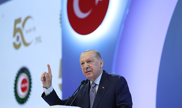 "KÖKÜ DIŞARIDA İDEOLOJİK YAKLAŞIMLARI REDDEDİYORUZ"Mehmet Akif Ersoy'un "Bekayı hak tanıyan, say'i bir vazife bilir. Çalış, çalış ki beka sa'y olursa hak edilir" beytini okuyan Cumhurbaşkanı Erdoğan, gündelik hayatın aksamadan devam etmesinin, emekçilerin "sa'y ü gayreti" sayesinde olduğunu söyledi.Cumhurbaşkanı Erdoğan, Türkiye'nin bugünlere gelmesine katkı sunanların en başında hiç kuşkusuz işçilerin, çalışanların ve emekçilerin geldiğini belirterek, şunları kaydetti: "Bugün şunu çok net bir şekilde görüyor ve gönül rahatlığıyla söylüyorum. Şimdiye kadar olduğu gibi Türkiye Yüzyılı'nda da şeref hakkı, el emeğiyle, göz nuruyla, alın teriyle helal rızkını kazanan siz emekçilerimizin olacaktır. Hükûmet olarak bunun için canla başla çalışmaya devam edeceğiz. Hangi sendika bünyesinde olursa olsun ülkemiz ve milletimiz için çalışan tüm işçi kardeşlerimi bir kez daha saygıyla selamlıyor, Türkiye'ye yaptıkları eşsiz hizmetlerden ötürü her birine şükranlarımı ifade ediyorum. Burada şu gerçeğin altını çizmek istiyorum. Örgütlü emek ve hak mücadelesi için sendikalar elbette vazgeçilmezdir. Fakat unutmayalım ki sendikalarımızın varlığı işçiyle kaimdir, emekçi ile kaimdir. İşçi olduğu için, emekçi örgütlendiği için sendikalar vardır. Sadece sendikaların değil, son tahlilde işverenin varlığı da o işi yapacak insan unsuruyla kaimdir. Biz, bunları birbirine hasım gören, birbirinin adeta kanlı bıçaklısı gören kökü dışarıda ideolojik yaklaşımları reddediyoruz.""ÇALIŞMA BARIŞI, ADALETLİ DAVRANMAKLA TEMİN EDİLEBİLİR"Geriye bakıldığında, işçi ile işvereni düşmanlaştıran anlayışın emek mücadelesine katkıdan ziyade zarar verdiğinin görüldüğünü dile getiren Cumhurbaşkanı Erdoğan, konuşmasını şöyle sürdürdü: "Şurası bir gerçek ki alın teri ve emek hiçbir ideolojiye, hiçbir hizbe, hiçbir klik ve gruba ipotek edilemeyecek kadar kutsaldır, yücedir, hürmete layıktır. İşçi ve işveren arasındaki ilişki ancak hak temelli bir bakış açısıyla ele alındığında doğru bir şekilde anlaşılabilir. Bizim medeniyetimizde işçinin işveren üzerinde hakkı olduğu gibi işverenin de işçi üzerinde hakkı vardır. Çalışma barışının sağlanması ancak bu şekilde mümkün olacaktır. Çalışma barışı taraflar arasında denge kurmakla, adaletli davranmakla, işverenin, işçinin üretimden ve hizmetlerden yararlanan tüketicinin müşterek haklarını korumakla temin edilebilir. Bu noktada kurulduğu günden beri soğuk savaş ürünü ideolojik sendikal anlayışlara prim vermeden ilkeli, tutarlı ve istikrarlı bir sendikacılık örneği sergileyen, 50 senedir erdemli sendikacılığın ülkemizdeki sancaktarlığını üstlenen HAK-İŞ'i huzurlarınızda bir kez daha tebrik ediyorum.""İNSANLIK ADINA VERİLMİŞ ONURLU BİR MÜCADELE""Nasıl hakkı, adaleti, özgürlüğü, alın terini savunmak bir erdemse, haksızlığa, zorbalığa, her türlü emek istismarına karşı çıkmak da aynı ölçüde erdemdir, fazilettir. İnsanlık adına verilmiş onurlu bir mücadeledir" diyen Cumhurbaşkanı Erdoğan, şu ifadeleri kullandı: "Bunun muhatabı kimi zaman hak hukuk tanımayan patronlar olabilir. Kimi zaman gözünü para hırsı bürümüş sermaye sahipleri olabilir. Kimi zaman ezilenlerin kaynaklarını sömüren emperyalistler olabilir. Kimi zaman elindeki gücü hoyratça kullanan küresel lobiler olabilir. Kimi zaman milletin muazzez iradesine el uzatan darbeciler olabilir. Kimi zaman mazlumların oluk oluk kanını akıtan zalimler olabilir. İşte bunlara karşı durmakta en az emek mücadelesi, ücret mücadelesi kadar mühimdir, değerlidir, insan olarak bizim asli vazifemizdir."HAK-İŞ'in 50 yılını anlatan kısa filmi hep beraber izlediklerini belirten Cumhurbaşkanı Erdoğan, yarım asırlık mücadelenin serencamına bir kere daha tanıklık ettiklerini, her açıdan gurur verici, şahsiyetli, haysiyetli bir emek mücadelesinin HAK-İŞ çatısı altında sabırla, samimiyetle, kararlılıkla yürütüldüğünü gördüklerini söyledi.Cumhurbaşkanı Erdoğan, HAK-İŞ'in, köklü bir yürüyüşün, alın teriyle yoğrulmuş bir davanın adı olduğunu ifade ederek, şöyle konuştu: "Türkiye'nin sancılı ve sıkıntılı zamanlardan geçtiği, sabah erken uyananın demokrasi ve millî irade gaspına teşebbüs ettiği, sokaklarımızda kaos ve çatışmanın hüküm sürdüğü dönemlerde HAK-İŞ, sadece kendi mensuplarının değil, topyekun milletimizin, millî iradenin de hakkını savunarak Türk sendikacılık tarihinde bir ilki başarmıştır. Konfederasyonumuzun ilk basın toplantısında dile getirilen şu prensiplere yarım asırdır bağlı kaldığını görmekten ayrıca mutluluk duyuyorum. HAK-İŞ, manevi, millî değerlere bağlı, milletimizin bünyesine uygun bir görüşün sahibidir. HAK-İŞ, yabancı ideolojilere işçilerimizi alet etmek isteyen konfederasyonlara karşı olduğu gibi, işçinin omzundan sendika ağalığı ve sendika patronluğu kuranların da karşısındadır. HAK-İŞ, işte bu ortamda işçimizin gerçek temsilcisi olacaktır. İşçiye gerçek hizmet gayesiyle ortaya çıkan HAK-İŞ olarak başlatmış olduğumuz bu mücadelede, Türk işçisiyle el ele, omuz omuza yürüyeceğiz.""TÜRK DEMOKRASİSİNİN KENDİSİNE KARŞI KURULAN TUZAKLARI BİRLİKTE BOŞA ÇIKARDIK"HAK-İŞ'in yarım asırlık örnek yolculuğunda, darbecilerle, vesayetçilerle, terör örgütleriyle, para babalarıyla değil, daima milletle yürüdüğünü anlatan Cumhurbaşkanı Erdoğan, şu ifadeleri kullandı: "Tıpkı o gün söz verdikleri gibi Türk işçisiyle omuz omuza yürüdü. İşçinin alın terini ideolojik çatışma ve kamplaşmalara meze ettirmediniz. Millî iradeye yönelik bütün saldırılarda demokrasiden yana saf tu