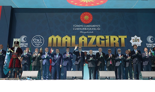 Konuşmasında, dün Ahlat'ta gençlerle hasret giderdiklerini, Ahlat Cumhurbaşkanlığı Külliyesi'ndeki Kabine Toplantısının ardından millete seslendiklerini anımsatan Cumhurbaşkanı Erdoğan, şunları kaydetti: "Bugün de sizlerle o müstesna zaferin 954. yıl dönümünde Malazgirt'teyiz. Bu meydanı hıncahınç doldurarak heyecanımıza ortak olan kıymetli kardeşlerime ayrı ayrı teşekkür ediyorum. Dünyaya, 'biz buradayız ve kıyamete kadar da burada olacağız' mesajını en güçlü şekilde verdiğimiz Malazgirt Zaferi'nin 954. yılı mübarek olsun. Büyük komutan Sultan Alparslan ve yiğit askerlerinin, gazilerin, akıncı birliklerinin, o kahraman ordunun, her bir neferinin aziz ruhları şad olsun. Zaferin müjdecisi olan o kutlu günde İslam coğrafyasının dört bir ucundaki camilerde, minberlerde şu hutbe irat ediliyordu, 'Allah'ım, İslam'ın sancağını yükselt ve Alparslan'a yardım et. Onun niyet ve azmini başarıyla neticelendir. O nasıl senin çağrına uyup dininin korunmasına rehavet göstermeden, emrine uymuş ve düşmanlarına bizzat karşı koyarak geceyi gündüze katmışsa, sen de ona zafer kısmet eyle. Dileklerinde ona yardımcı ol. Kaza ve kaderini onun için tecelli ettir' Sultan Alparslan, 26 Ağustos günü cuma namazını eda ettikten sonra kefen niyetine giydiği beyaz elbisesiyle ordusunun huzuruna çıkmış ve gaza erlerine şu tesirli sözlerle hitap etmiştir; 'Ey askerlerim ve komutanlarım, daha ne zamana kadar biz azınlıkta düşman çoğunlukta olmak üzere böyle bekleyeceğiz. Ben bizzat Müslümanların minberlerde bizim için dua ettikleri bu saatte düşmanın üzerine atılmak istiyorum. Galip gelirsek, arzu ettiğimiz sonuç hasıl olacaktır. Aksi takdirde şehit olarak cennete gideceğiz' Evet, atının kuyruğunu bağlayıp düşmanın üstüne korkusuzca atılan Sultan Alparslan ve ordusunu bugün bir kez daha kemal-i hürmetle yad ediyoruz.""BÜYÜK VE GÜÇLÜ TÜRKİYE İÇİN KELİMENİN TAM ANLAMIYLA ÇIRPINIYORUZ”Ahlat ve Malazgirt önlerindeki ilk akınlardan, fethin ilk günlerinden bugüne kadar vatan, bayrak, millet ve ümmet için canlarını feda eden şehit ve gazilere Allah'tan rahmet dileyen Cumhurbaşkanı Erdoğan, şunları ifade etti: "Malazgirt'te Rahva Ovası'nda düşmanı bozguna uğratan, Anadolu'nun cümle kapısını ardına kadar açan o güçlü irade bugün işte buradadır. 'Şu anda Malazgirt'teki gazilerin Allah adına ant içtikleri minberin önünde ve Allah'a yükselen ellerin üstünde minberdeki yeşil perdenin harp meydanlarından gelen rüzgarla kabardığını adeta görür gibiyim' Merhum Nurettin Topçu üstadımızın işte bu sözlerle tarif ettiği o güçlü ruh bugün hamdolsun Malazgirt meydanındadır. Malazgirt'te omuz omuza destan yazan kahramanların uğruna hayatlarını feda ettikleri mukaddes değerler işte buradadır. Türk'ü, Kürt'ü, Arap'ı, Sünnisi ve Alevisi ile Anadolu'nun gönül harcını muhabbetle yoğuran kurucu irade bugün buradadır. Asırlar boyunca yeryüzüne nizam vermiş i'la-yi kelimetullahı, bu davayı müdafaa etmiş o sarsılmaz inanç bugün hamdolsun buradadır. Şunu özellikle ifade etmek istiyorum, Sultan Alparslan'ın zaferini Selahaddin Eyyubi ve ordusu ile buluşturan, Sultan Fatih'in emanetini Yavuz Sultan Selim'e ulaştıran işte bu imandır.""İmandır bu cevher ki ilahi ne büyüktür. İmansız olan paslı yürek sinede yüktür" dizelerini okuyan Cumhurbaşkanı Erdoğan, "Mevlâna’da Yunus Emre'yi, Hacı Bektaş-ı Veli'yi de İdris-i Bitlisi'yi, Ahmed-i Hani'yi gören işte bu aşktır. Hazreti Ömer'i Hazreti Ali'den, Selman-ı Farisi'yi Suheyb-i Rumi'den ayırmayan o hikmetli bakış işte bu topraklarda mahfuzdur" dedi.Millet olarak, bundan 954 yıl önce Malazgirt Ovası'nda yazılan kahramanlık destanından aldıkları cesaret ve öz güvenle istikbale yürüdüklerini belirten Cumhurbaşkanı Erdoğan, "Ecdadın mübarek kanlarıyla bizlere vatan eylediği bu toprakları ebedi yurdumuz olarak muhafaza etmek için var gücümüzle çalışıyoruz. Her türlü engele, her türlü engellemeye, her türlü sabotaja rağmen yeniden büyük ve güçlü Türkiye için kelimenin tam anlamıyla çırpınıyoruz. Şunu burada samimiyetle ifade etmek isterim, bugün bekası söz konusu olduğunda hiçbir güce boyun eğmeyen bir Türkiye'de yaşıyoruz" diye konuştu.Cumhurbaşkanı Erdoğan, bugün kendi vatandaşlarıyla birlikte mazlum ve mağdurların da umudu hâline dönüşen bir Türkiye'nin olduğunu vurgulayarak, sözlerini şöyle sürdürdü: "Bugün, Filistin davasına her platformda tüm imkânlarıyla sahip çıkan, İsrail'in alçak zulümleri karşısında Gazzeli kardeşlerini asla yalnız bırakmayan bir ülkemiz ve hükûmetimiz var. Mektup diplomasisiyle, telefon görüşmeleriyle, uluslararası toplantılarla, 102 bin tonu aşan yardımlarımızla Gazze'nin hakkını ve hukukunu en güçlü şekilde savunuyoruz. Kim ne derse desin, bize ve milletimize yakışan tavır neyse eğilmeden, bükülmeden ve hiç kimseden çekinmeden yerine getiriyoruz.""KURUMLARIMIZ ÇALIŞMALARINI BİR KUYUMCU TİTİZLİĞİYLE SÜRDÜRÜYOR"Cumhurbaşkanı Erdoğan, bütün bu emeklerin neticelerinin alınacağı bir sürecin içinde olunduğunu dile getirerek, şunları kaydetti: "Milletimizin fertleri arasına örülen fitne duvarlarını tamamen yıkmak için başlattığımız 'Terörsüz Türkiye' sürecinde hamdolsun kısa sürede önemli mesafe kat ettik. Kandan ve çatışmadan beslenen çevrelerin süreci kundaklama çabalarına rağmen tüm kurumlarımız çalışmalarını 'asırlık birlikten sonsuz kardeşliğe' hedefiyle adeta bir kuyumcu titizliğiyle sürdürüyor. Milletimiz de yürütülen çalışmaları dikkatli olduğu kadar, son derece umutlu bir yaklaşımla yakından takip ediyor. Kimin sürece samimiyetle destek verdiği, kimin de alakasız gündemlerle süreci zehirleme gayre