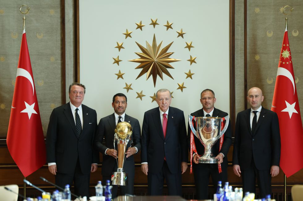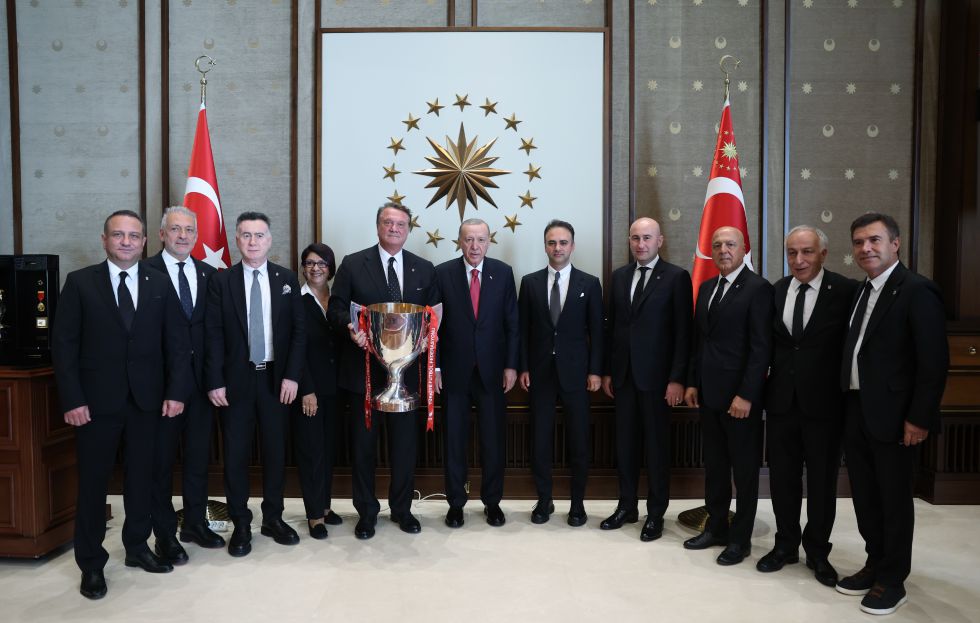Cumhurbaşkanı Recep Tayyip Erdoğan, Ankara’daki Cumhurbaşkanlığı Külliyesi’nde; Beşiktaş Başkanı Hasan Arat, İkinci Başkanı Hüseyin Yücel ve Yönetim Kurulu Üyelerini kabul etti.