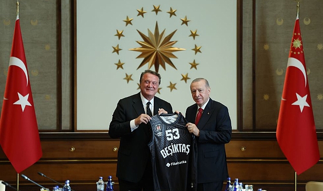 Başkan Hasan Arat, Beşiktaş Kulübüne başarı dileklerinde bulunan Cumhurbaşkanı Erdoğan’a Futbol A Takımına Beşiktaş Fibabanka Erkek Basketbol Takımı 53 numaralı formalarını takdim etti.