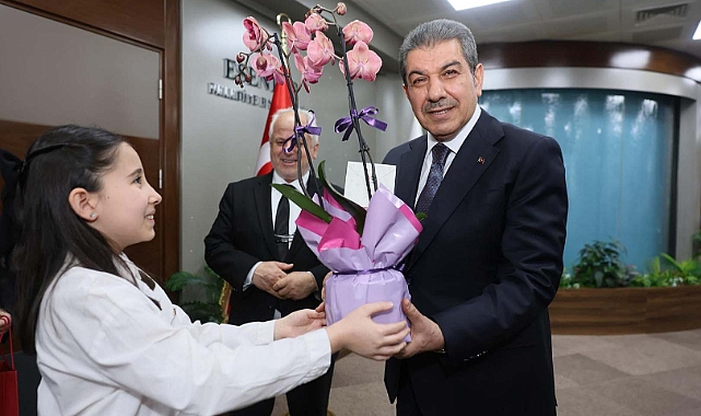Çocuk Belediye Başkanı İbrahim Melih Kavak ile Başkan Yardımcıları Elif Aybüke Kayıkçı ve Kerem Karakaya, Başkan Göksu tarafından karşılandı.