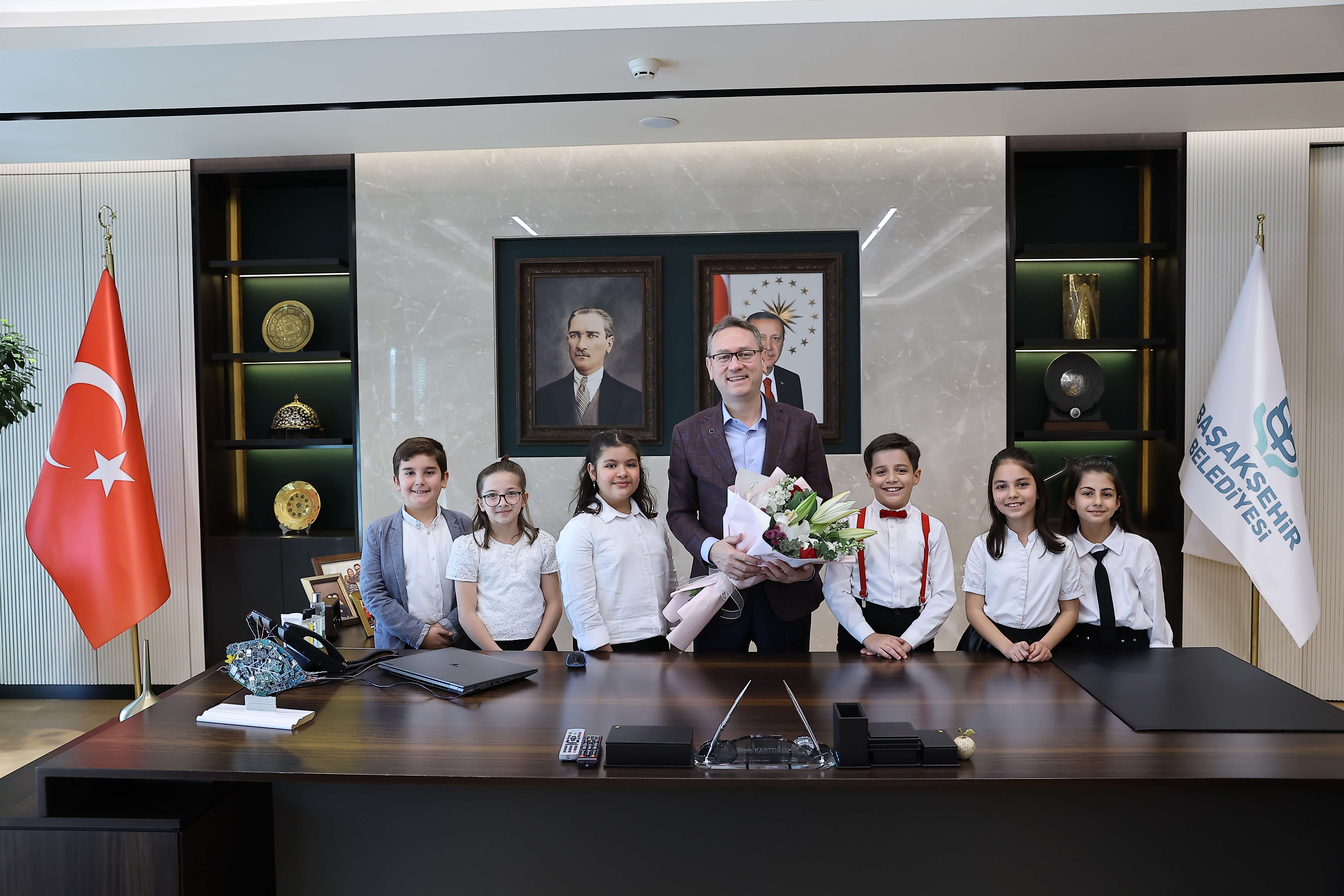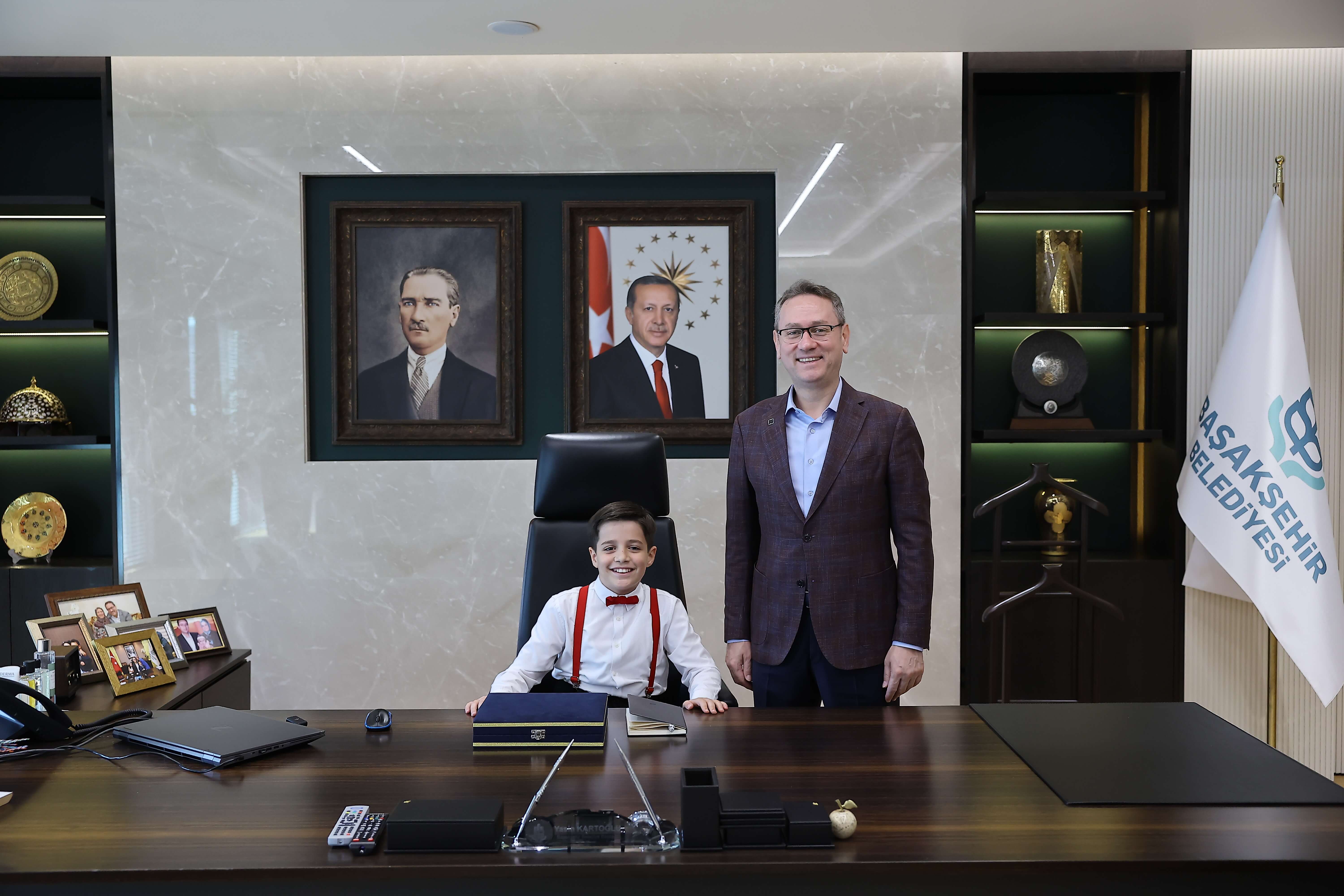 Başakşehir Belediye Başkanı Yasin Kartoğlu, 23 Nisan Ulusal Egemenlik ve Çocuk Bayramı vesilesiyle sembolik olarak başkanlık makamını 10 yaşındaki Hikmet Akif Engi’ye bıraktı. Filistin ve Gazze’de yaşanan katliamlara dikkat çeken Engi, “Filistin’deki çocuklar bu bayramı gönül rahatlığıyla yaşayamıyor.” dedi.