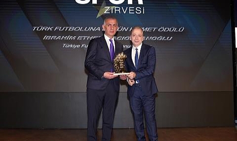 Konuşmasının ardından "Türk Futboluna Üstün Hizmet Ödülü"ne layık görülen TFF Başkanı İbrahim Ethem Hacıosmanoğlu'na ödülü, Fotomaç Gazetesi Genel Yayın Yönetmeni Zeki Uzundurukan tarafından takdim edildi.