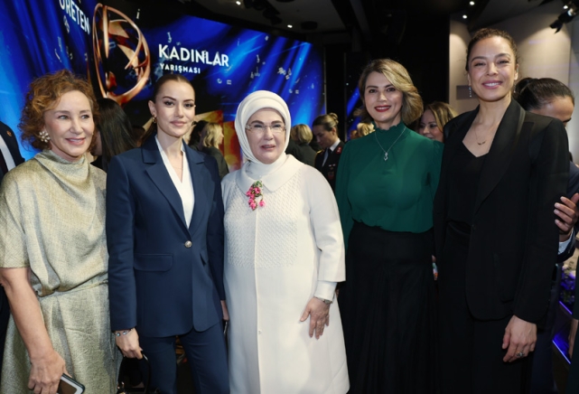 Kadınların hak arayışlarında, vatan savunmasında, toplumsal yaraları sarmada hep ön saflarda yer aldığını dile getiren Emine Erdoğan, "Biz, kadınlarımızın nasıl emsalsiz bir güç olduğunun farkında olan ve bu gerçeğe hürmet eden bir ülkeyiz. Ekonomiden sanayiye, spordan sanata, siyasetten akademiye, geldiğimiz her noktada kadınlarımızın alın teri var. Hükûmetimiz, ilk günden bu yana, kadınların her alanda yücelmesi için örnek politikalar geliştirmiştir. Kadın istihdamının artmasını teşvik etmiştir. TÜİK verilerine göre, 2014 yılında yüzde 26'larda olan kadın istihdam oranı, 2024 Aralık ayı itibarıyla, yüzde 31,6'ya yükselmiştir. 2028 yılında, bu oranı yüzde 36,2'ye yükseltmeyi hedefliyoruz. İnşallah bu hedefi hep birlikte başaracağız" sözlerini sarf etti.