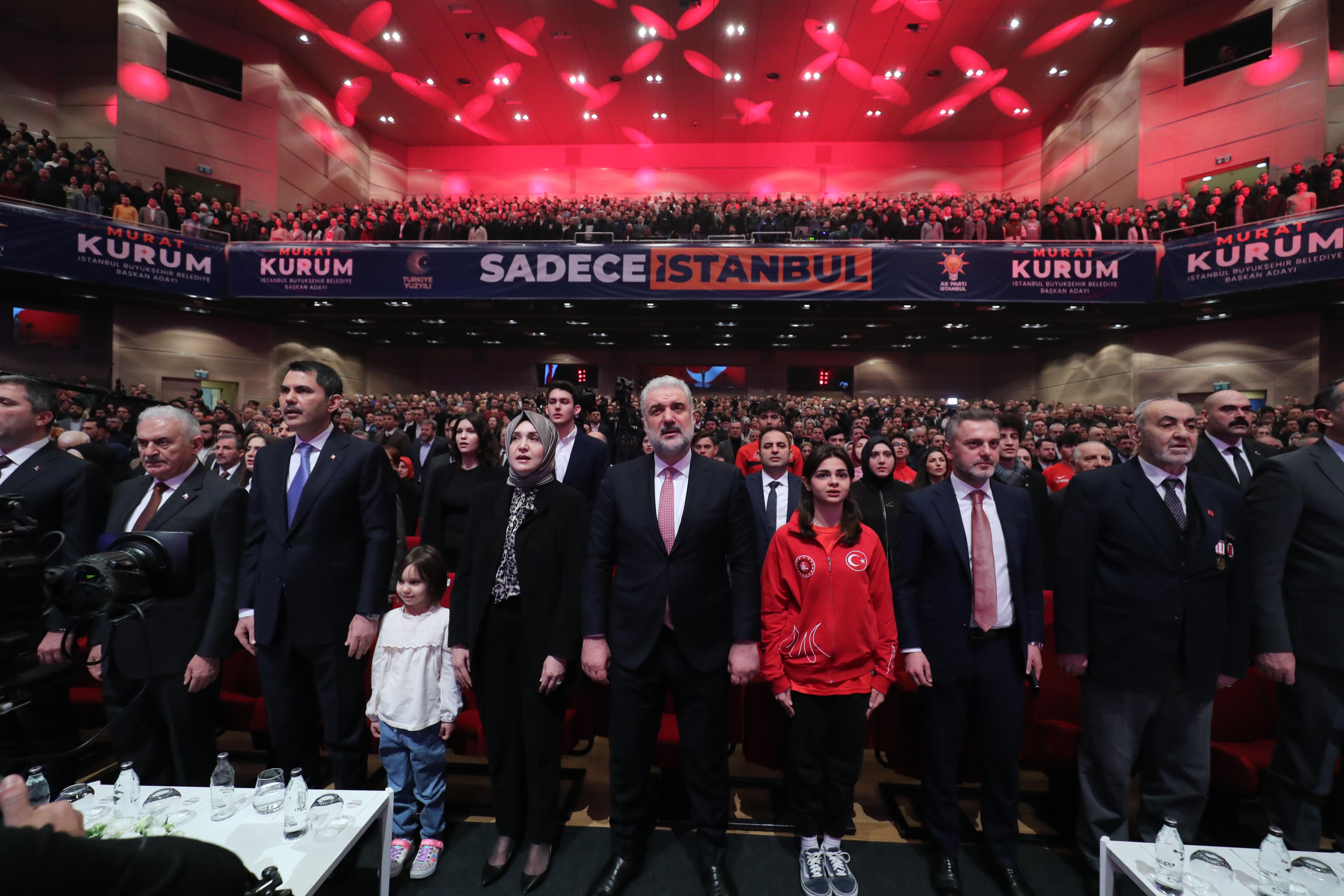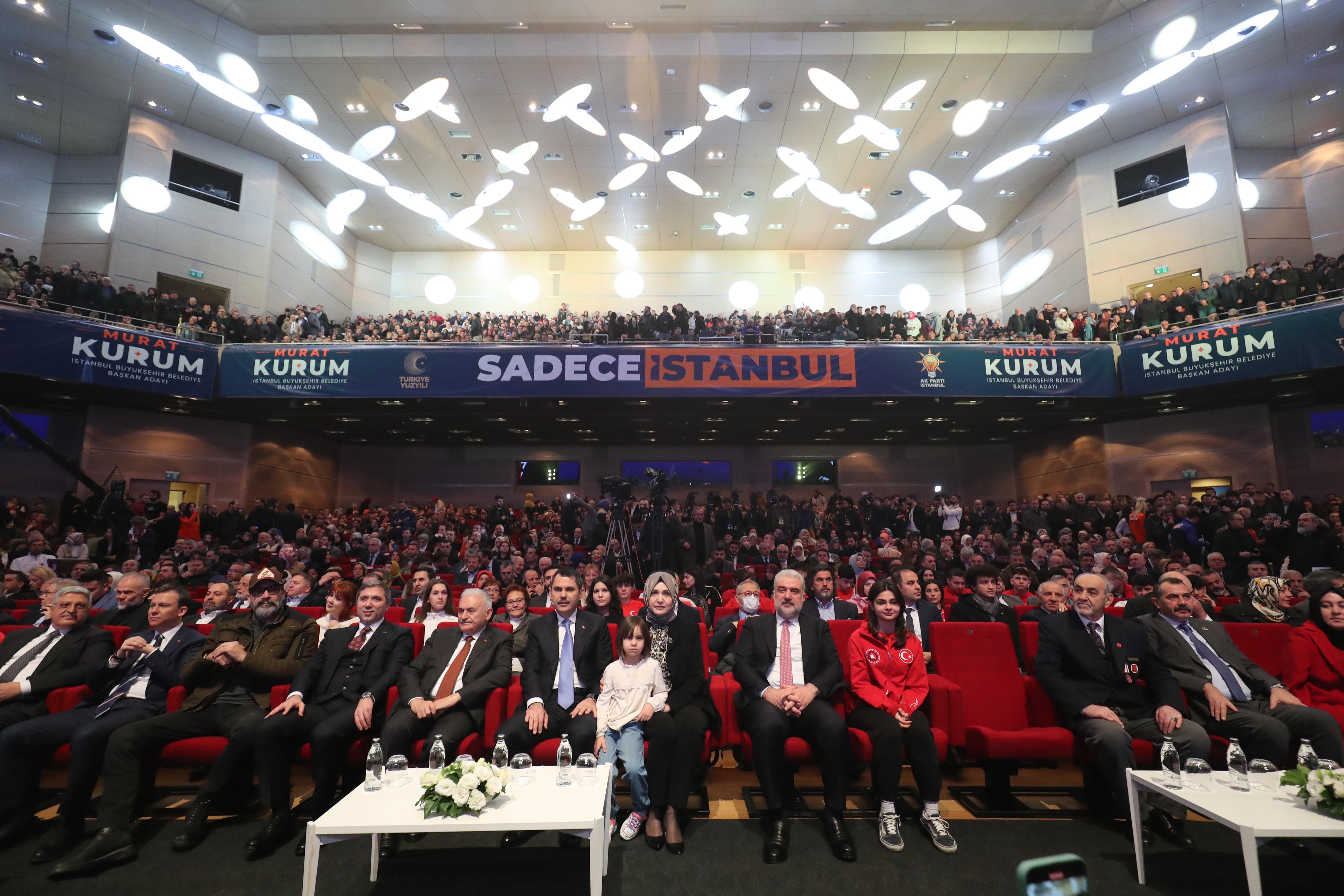İl Başkanı Kabaktepe’nin konuşmasının ardından İBB Başkan Adayı Murat Kurum’u anlatan kısa film izletildi. Akabinde İstanbul’da yaşanan karmaşanın anlatıldığı, Cem Karaca’nın “Bu son olsun” şarkısı eşliğinde hazırlanan klip izletildi. Gençlerin, baretli işçilerin yer aldığı bir grup da sahneye çıkarak Murat Kurum’a bir proje dosyası sundu. Kurum, “Gençlerle birlikte yöneteceğiz” mesajı verdi.