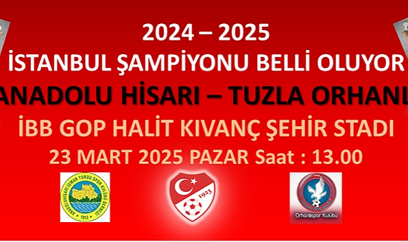 İstanbul Amatör liglerinde geleneksel olarak düzenlenmekte olan 20 İstanbul Şampiyonluk müsabakası 2024 – 2025 sezonunda Anadolu Hisarı ile Tuzla Orhanlı takımları arasında oynanacak.