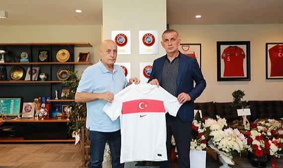 TFF Başkanı İbrahim Ethem Hacıosmanoğlu, ziyaretin sonunda İstanbulspor A.Ş. Başkanı Ecmel Faik Sarıalioğlu'na A Millî Takım forması takdim etti.