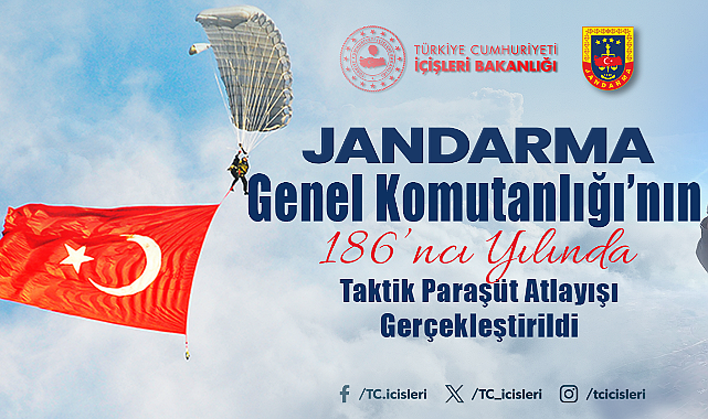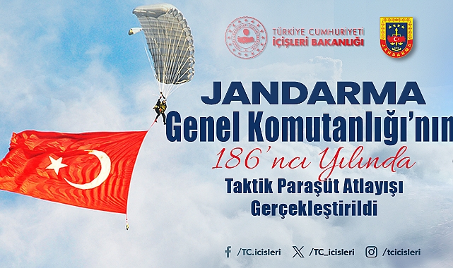 Jandarma Genel Komutanlığımızın 186'ncı kuruluş yıl dönümü etkinlikleri kapsamında, Jandarma Komando Özel Asayiş Komutanlığımız serbest paraşüt ile