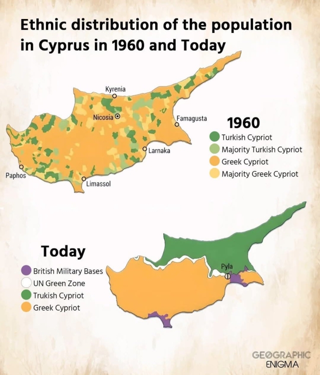 1974 sonrası nüfus mübadele edilerek yer değiştirdi. Bugün adanın %36’sı KKTC toprağıdır.- KKTC nüfusu: yaklaşık 500 bin