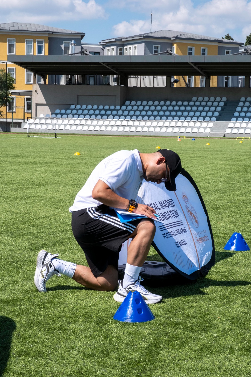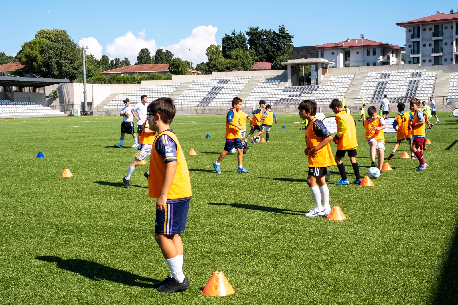 Küçükçekmece İlçesinde, yaz dönemi için Real Madrid Futbol Okulu koordinatörü Muharrem Çakır yönetiminde Sabahattin Zaim Üniversitesi stadı'nda gerçekleştirilen ilk antrenmanda, küçük sporculara maç teknik ve taktikleri hakkında bilgi verdi.