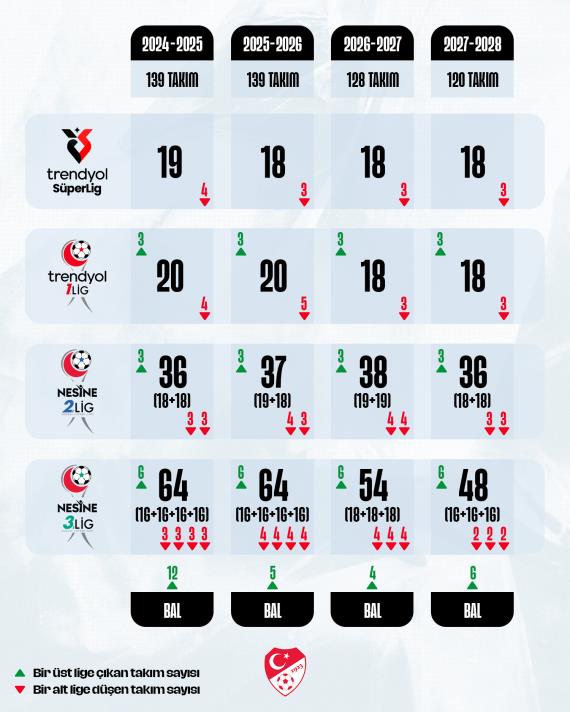 Türkiye Futbol Federasyonu Yönetim Kurulu, 16 Nisan 2025 tarihinde Riva Hasan Doğan Millî Takımlar Kamp ve Eğitim Tesisleri'nde bir toplantı gerçekleştirmiş; toplantıda profesyonel liglerdeki takım sayısının azaltılması kararı alınmıştır.