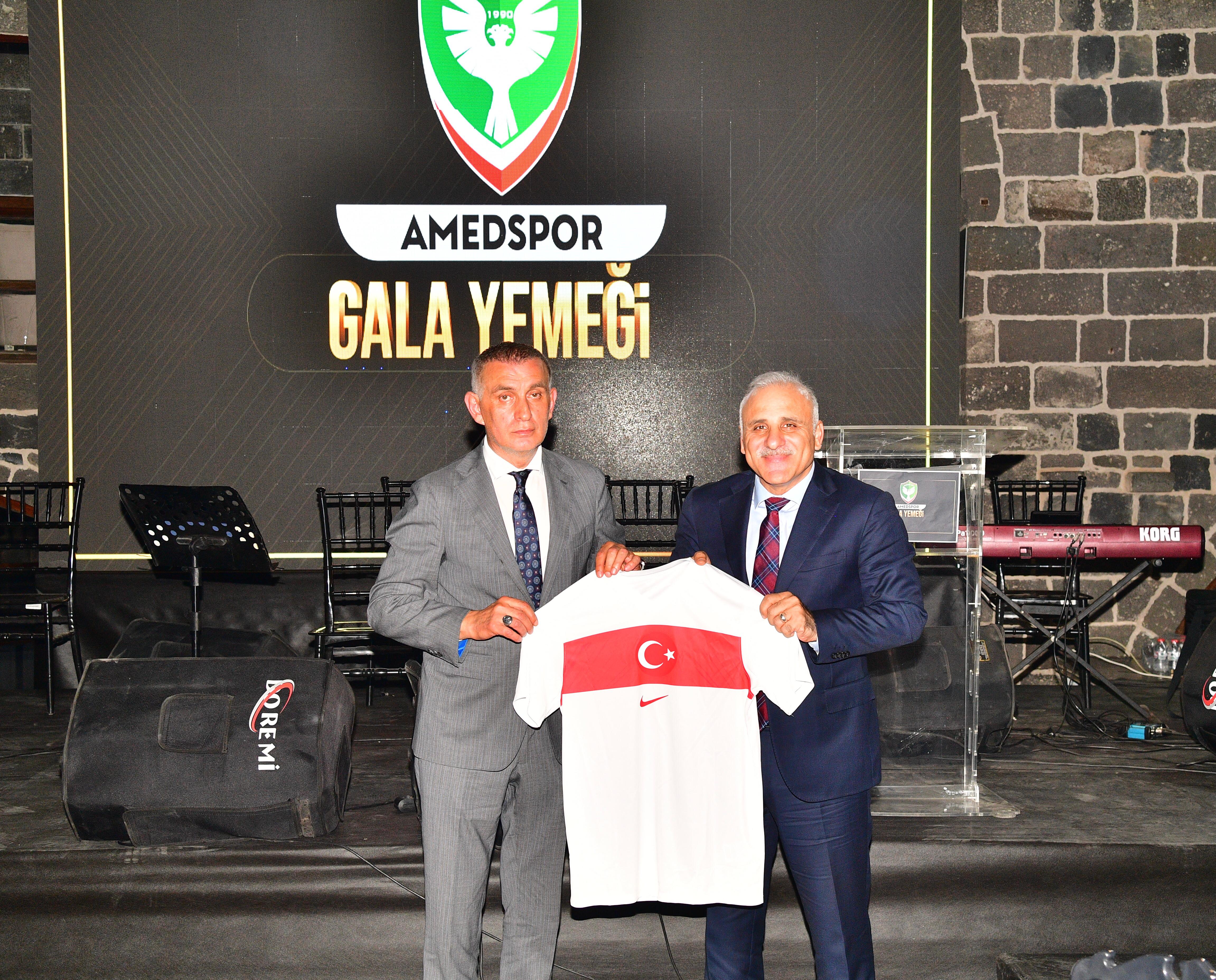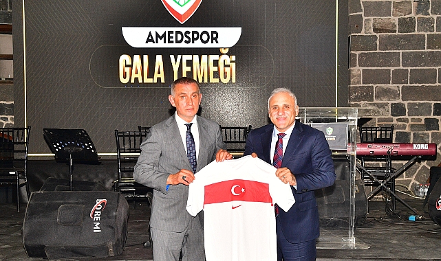 Başkan Hacıosmanoğlu, yemekte Diyarbakır Valisi Murat Zorluoğlu'na üzerinde isminin yazılı olduğu ve Diyarbakır şehrini simgeleyen 21 numaralı bir A Millî Takım forması takdim etti.