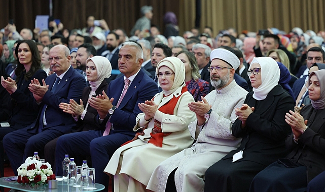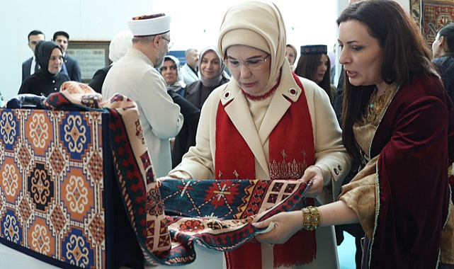 Emine Erdoğan, açılışın ardından hüsnühat, tezhip ve nakış sanatıyla oluşturulan ve Hz. Muhammed'in yaşadığı çağın önemli dönüm noktalarını betimleyen eserlerin yer aldığı "Türk İslam Sanatlarıyla Siyer-i Nebiye Yolculuk" sergisini gezdi.Azerbaycanlı sanatçıların eserlerinin sergilendiği standı ziyaret eden Emine Erdoğan, kadın sanatçıların ürettiği dokuma ürünlerini yakından inceledi, ürünlerin üretim süreci hakkında bilgi aldı.Emine Erdoğan, Gaziantep Büyükşehir Belediyesi Kültür AŞ standını da ziyaret ederek "Esma-i Hüsna Hat Sergisi"ndeki eserleri inceledi.AK Parti İstanbul Milletvekili ve müzisyen Yücel Arzen Hacıoğulları'nın da yer aldığı orkestranın musiki icrasıyla başlayan programda konuşan Emine Erdoğan, sanatla, güzellikle ve estetikle buluştukları anlamlı fuarda bir araya gelmelerini sağlayan Diyanet İşleri Başkanlığına teşekkür etti, fuara katılan tüm sanatçıları tebrik etti.Şiir için "Darası alınmış söz" denildiğini aktaran Emine Erdoğan, İslam sanatları gibi geniş çaplı bir mevzuyu en iyi açıklayanın, Necip Fazıl Kısakürek'in "Anladım işi: sanat, Allah'ı aramakmış. Marifet bu, gerisi yalnız çelik çomakmış" mısraları olduğunu söyledi.İslam inancında asıl sanatkârın, eserin yaratıcısının ve sahibinin Allah olduğunu belirten Emine Erdoğan, âlemde görülen her şeyde onun "Cemil" isminin yansımasının bulunduğunu dile getirdi."İSLAM SANATI, İLAHİ OLANI HATIRLATANDIR"Hz. Muhammed'in bir hadisi şerifinde "Allah güzeldir, güzelliği sever" buyurduğuna işaret eden Emine Erdoğan, bu hadisin, İslam sanatının amacını, ilkelerini, ölçüsünü ve çerçevesini belirlediğini aktardı.Emine Erdoğan, şu ifadeleri kullandı: "İslam sanatı, ilahi olanı hatırlatandır. Üzerinde maveradan mis kokular taşıyandır, altın oluktan süzülüp gelendir. O nedenle, ne zaman rafine bir Müslüman gönülden çıkmış bir sanat eseri görsek, ruhumuzda kuşlar havalanır. Derin bir hasretliğin, çokça duası edilmiş bir kavuşmayla bitmesi gibi tarifsiz bir sevince gark oluruz. Çünkü insan ruhu, daima, ilahi olanla iletişim kurmanın özlemi içindedir. Ne mutlu bizlere ki güzelliği kendine amaç edinmiş büyük medeniyetimizde, İslam sanatları, şahikalarına ulaşmıştır. Mimar Sinanların, Şeyh Hamdullahların, Nabilerin, Dede Efendilerin eserleri, böyle bir medeniyet atmosferinde neşvünema bulmuştur. Hat sanatının zarafetinin ulaştığı üstün mertebe, öyle hayranlık uyandırmıştır ki 'Kur'an Mekke'de nazil oldu, Mısır'da okundu, İstanbul'da yazıldı' denilmiştir."Picasso'nun, hat sanatına büyük hayranlık duyduğunun ve "Sizin hat sanatınız, bizim ulaşmaya çalıştığımız modern sanata yüzlerce yıl önce ulaşmış" dediğinin anlatıldığını anımsatan Emine Erdoğan, geleneksel sanatların, hisler âleminin seması konumunda olduğunu vurguladı.Ebru sanatının, görülen bir rüyayı suya anlatıp bir başkasına da gösterebilmenin yegâne imkânı olduğu dile getiren Emine Erdoğan, şöyle devam etti: "Anlam arayışlarında kaybolan insan, neyin sesini takip ederek gönül yurduna varır. Çini, 'Hamdım, yandım, piştim' denilen yolculukta, insanın yarenidir. Yorgun ruhlar, kat'ıdaki, divaldeki, sedef kakmadaki motiflerin hamağına uzanarak dinlenir. Tezhip, kâinatın sınırsızlığında uzun yolculuklara çıkan hayal gücünün, eve dönerken yanında getirdiği hediyelerdir. İşte bu yüksek sanat anlayışı, medeniyetimizde her zaman düşüncenin ve eylemin merkezinde bir konumda olmuştur. Yapılan her işteki kriter, güzelliği seven Yaradan'a layık olmaya çabalamaktır. Ecdadımız, bu sanatlı yaşam anlayışını, hayatın her alanına nakşetmiştir. Mesela, bir camiye girdiğinizde yalnızca bir mabedin binasına girmiş olmazsınız. Muhteşem çinilerle, hayranlık uyandıran kalem işi süslemeleriyle, hüsnühat levhalarıyla karşılandığınız bir sanat deryasına girersiniz.""GELENEKSEL SANATLARIMIZ, MEDENİYETİMİZİN AYIRT EDİCİ ÖZELLİĞİDİR"Gündelik yaşam ve sanatın, daima iç içe, el ele olduğuna, bunun, herkesin erişimine ve istifadesine açık olduğuna dikkati çeken Emine Erdoğan, bu pratiğin izlerinin mezarlıklara kadar uzandığına işaret etti.Emine Erdoğan, sözlerini şöyle sürdürdü: "Mezar taşlarındaki ince işçilik, mezar taşı kitabelerindeki hüsnühat, ölümü munisleştiren, insanı ulvi düşüncelere taşıyan zevkiselimin ürünleridir. Geleneksel sanatlarımızın icracılarına baktığımızda da farklı bir hâl üzere olduklarını görürüz. Sanatlarını, Allah'a adanmış bir kalp ve ruhla yapar, eserlerini hiçbir zaman kendilerine mal etmezler. Sanatı, hakikati aramakta aracı kılarlar. Çünkü İslam sanatının amacı, Yaradan'ın eserlerinden alınan ilhamla üretirken, onu anlamak, ona yaklaşmak ve onunla bütünleşmektir. Bu amaç, İslam sanatlarının her birine ayrı bir edep, etik değer ve incelik katmıştır."Emine Erdoğan, her sanat dalının, bir yönüyle de ruhun mektebi, tekâmülün merdiveni olduğunu belirterek, "Zira her bir eser, meydana gelmeden önce sabrın, azmin, itinanın, tevazuunun, tevekkülün imtihanlarından geçerek mezun olur. İçi hikmet yüklü bu eserler, yalnızca sanatkârını değil, onu deneyimleyen kişiyi de kanatlarının üzerinde varılması gereken manevi menzile taşır. İşte tüm bu yönleriyle geleneksel sanatlarımız, medeniyetimizin en önemli ayırt edici özelliğidir" diye konuştu.Dünyanın her geçen gün iklim değişikliğinin, savaşların, adaletsizliklerin grileştirdiği bir tabloya dönüştüğüne dikkati çeken Emine Erdoğan, şu değerlendirmelerde bulundu: "Yüzleşmek zorunda kaldığımız bu krizleri ele alırken, daha çok sonuçlarıyla meşgul oluyoruz. Kök neden olarak, sanayileşmeyi,